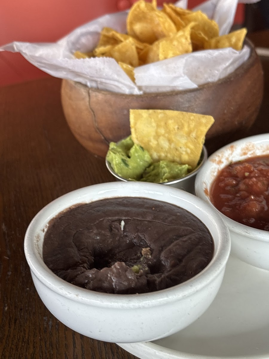 We tried chips and guacamole, fish tacos, chicken tacos, and sampler platters. All were tasty. The portion of refried beans was very small. I love the warmers outside on the patio. Great service.
